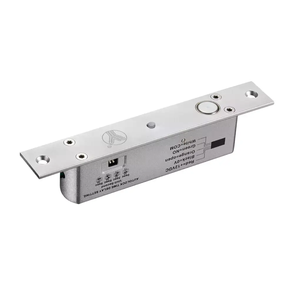 Thời gian trễ trong vòng (0-9 giây) có thể điều chỉnh được. Khóa có thể giữ yên trong một thời gian nhất định trước khi khóa lại. Điều này là để ngăn chặn bu lông va vào lá cửa.