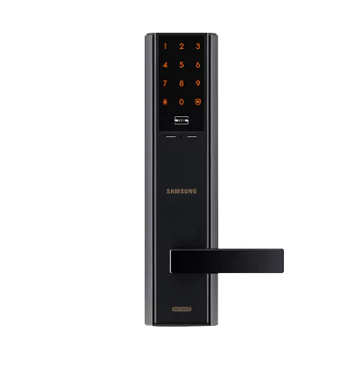 Khóa Samsung SHP DH 537 MU/EN là khóa cửa có tay cầm truy cập bằng thẻ từ, mã số, chìa cơ được sản xuất và lắp ráp tại Hàn Quốc