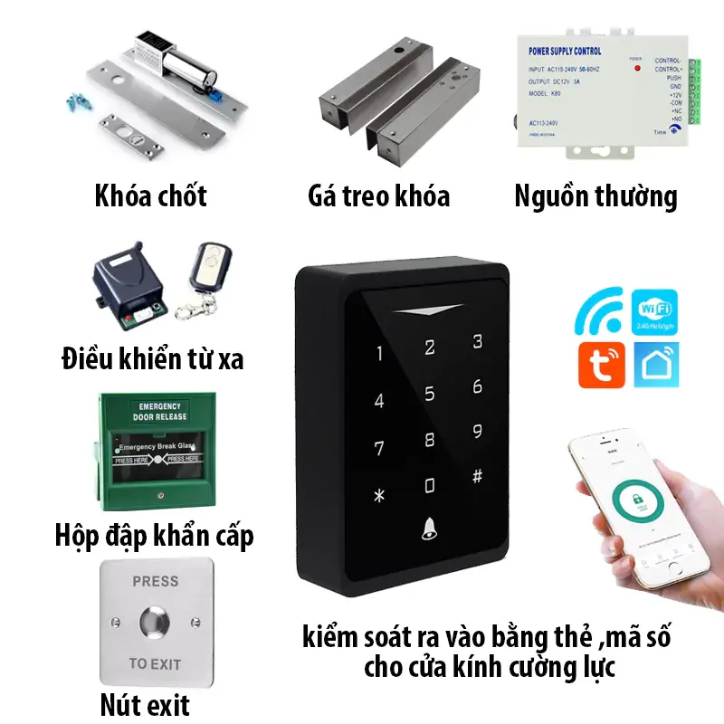 Chức năng mở cửa bằng thẻ từ,mã số có thể thêm điều khiển từ xa,điện thoại,…